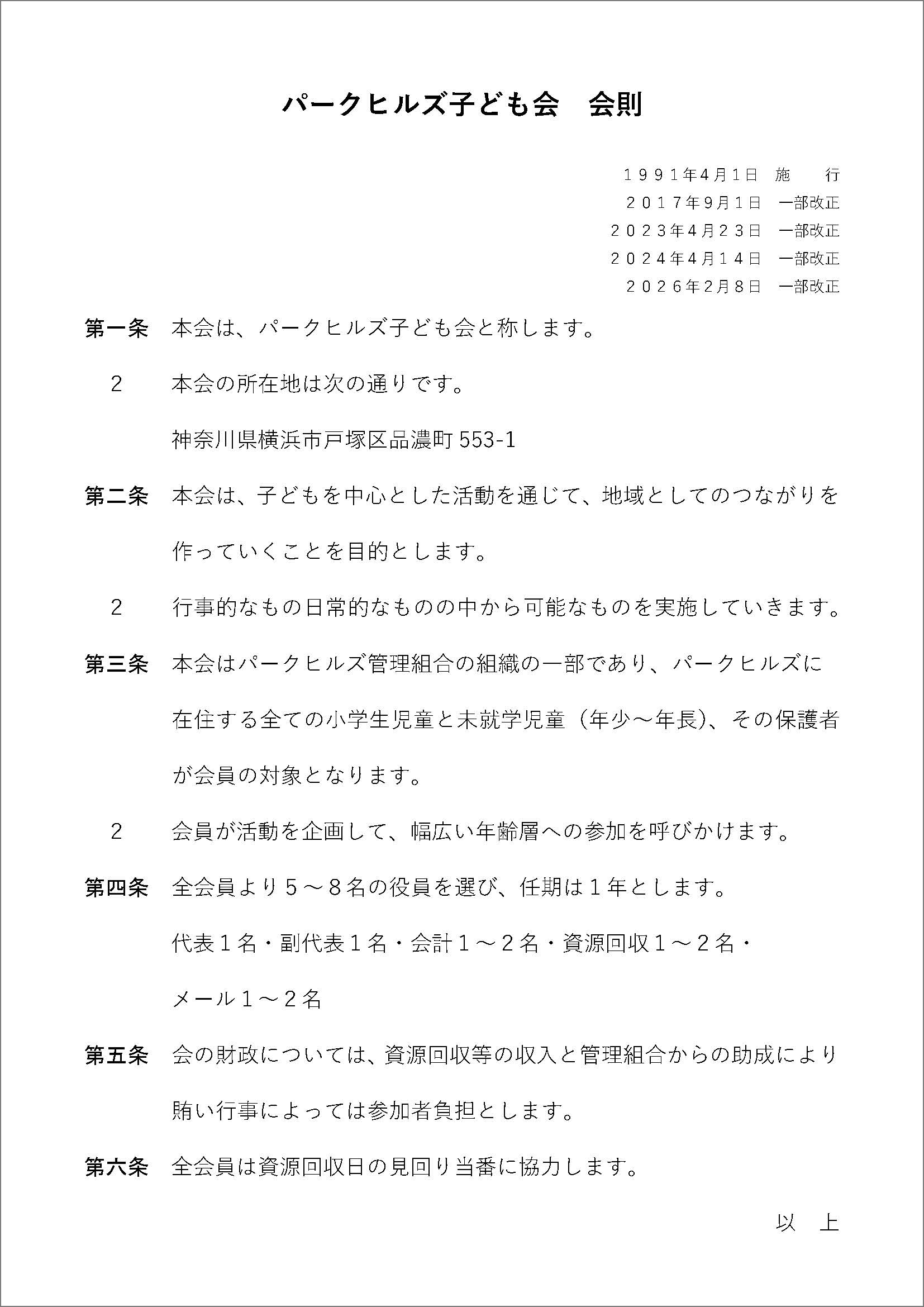 後日パークヒルズ子ども会代表から、メールでご連絡させていただきます。