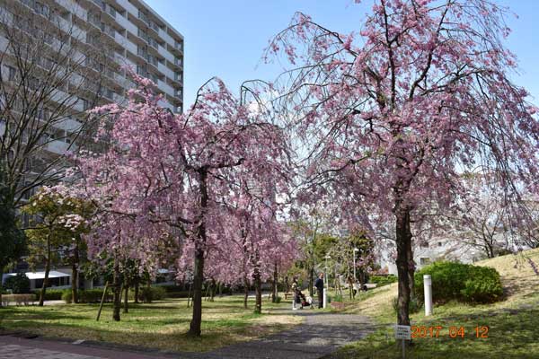 パークヒルズの桜は、ソメイヨシノがまとまって植えられていることや夜桜も楽しめることから、周辺の人たちにも人気があります。また、ヤエベニシダレの並木や樹形の見事なセンダイシダレなども他では見られない素晴らしい景観です。